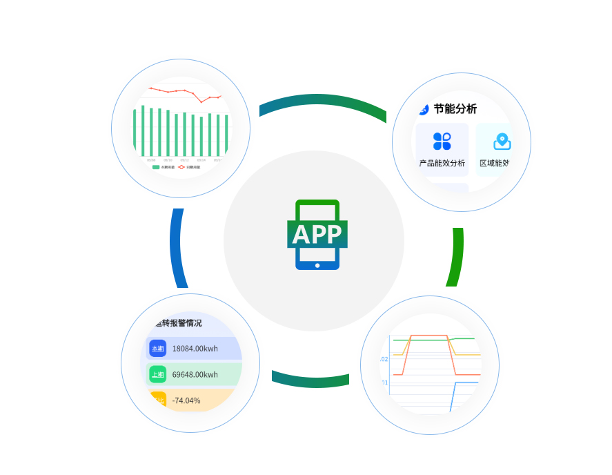 包括產品能效分析、區域能效分析、崗位能效分析等功能,從不同的層面對現場的生產耗能情況進行節能分析,找出其中的不合理之處。