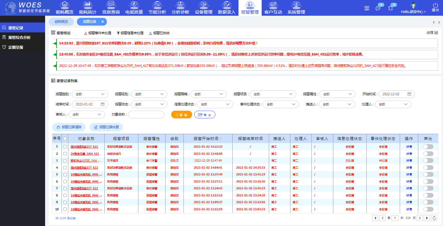 4、通過經濟運行分析模塊對全廠變壓器與電機進行了監測,對不經濟運行的電機和變壓器給出報警提示相關人員處理,通過對近半年的數據進行統計分析,不經濟運行現象已較半年前明顯下降。