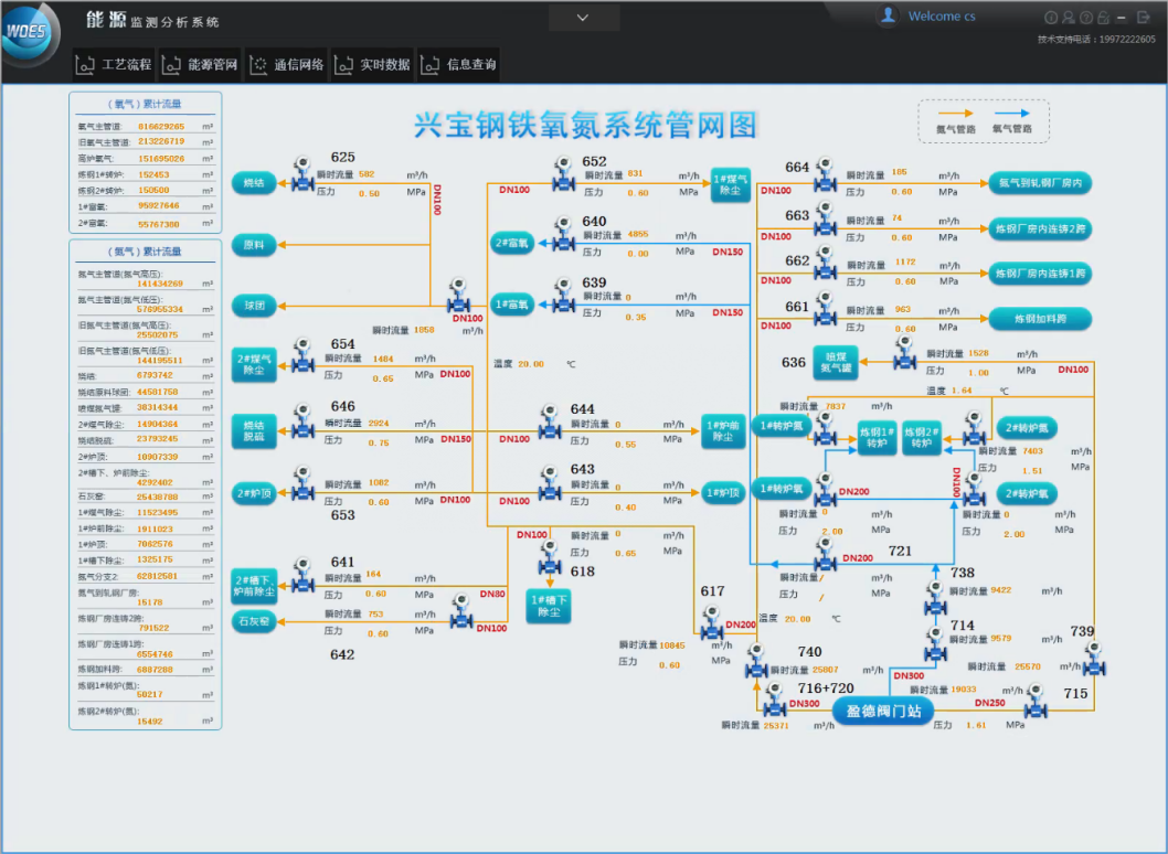 山西省某鋼鐵有限責任公司WOES智能優化節能系統監測能源種類為電力、水、蒸氣、煤氣,監測點共計411個,其中電力監測點338個、水系統監測點44個、蒸汽和煤氣、氮氣、氧氣監測點52個。涵蓋煉鐵廠(石灰窯工段、噴煤工段、球團工段、燒結工段、高爐煉鐵工段)、煉鋼廠、軋鋼廠、制氧廠、發電廠、煤氣柜。項目主要建設內容如下:
