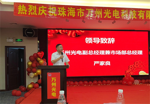 隨后,珠海萬州光電副總經理、市場部總經理嚴家良致辭。嚴總首先熱烈歡迎集團公司領導班子和優秀干部、員工代表蒞臨萬州光電二十周年廠慶活動,并表示萬州光電全體員工將秉承萬洲集團“造品牌產品、創品牌服務、做品牌企業”的經營理念,同心協力,奮勇前行,為早日實現萬州光電兩個重大目標貢獻更多力量。