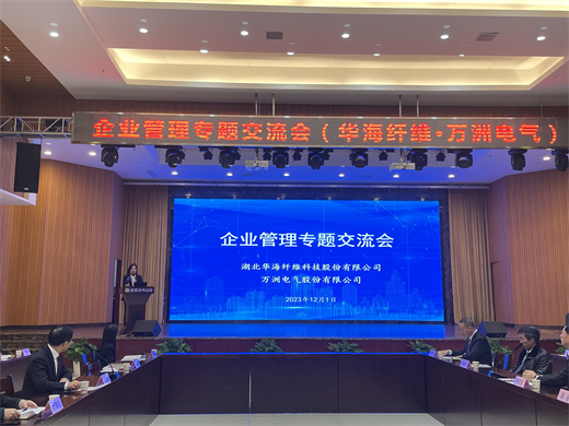 在一樓多功能會議廳,雙方開展企業(yè)管理專題交流討論。華海纖維作為萬洲電氣節(jié)能系統(tǒng)用戶,萬洲電氣襄陽研發(fā)中心總經(jīng)理路寧首先匯報了華海纖維系統(tǒng)運行狀況以及進一步發(fā)揮系統(tǒng)價值情況。隨后,雙方重點圍繞“黨群建設(shè)、企業(yè)管理提質(zhì)增效、新產(chǎn)品開發(fā)、綠色能源發(fā)展趨勢、市場營銷、人才儲備”等方面進行深入探討和交流。趙總分享了“萬洲電氣擁有一支團結(jié)勤勉的領(lǐng)導班子、萬洲的創(chuàng)新、培訓、企業(yè)文化”等發(fā)展壯大的法寶。周書記從華海纖維如何培養(yǎng)員工的歸屬感、凝聚力、榮譽感等方面介紹了獨特的管理方法,并分享了華海纖維依靠科技創(chuàng)新?lián)屨夹率袌觥⒑侠聿季謶?zhàn)略客戶、防范資金風險等管理經(jīng)驗。交流中,雙方還就提升企業(yè)執(zhí)行力、人才隊伍建設(shè)、企業(yè)上市路徑規(guī)劃等方面展開深入討論。