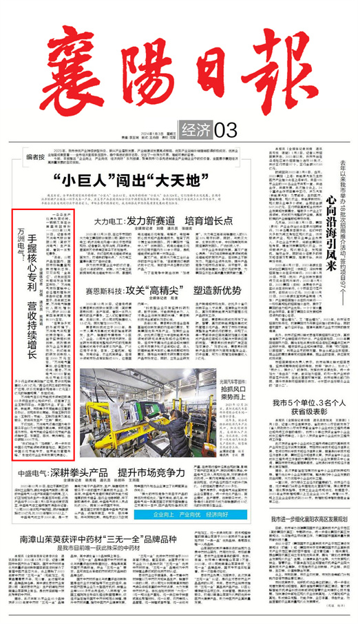 【襄陽日報】萬洲電氣:手握核心專利 營收持續增