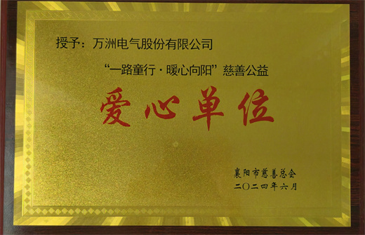 日前,萬洲電氣被襄陽市慈善總會(huì)授予“‘一路童行•暖心向陽’慈善公益愛心單位”榮譽(yù)稱號(hào)。