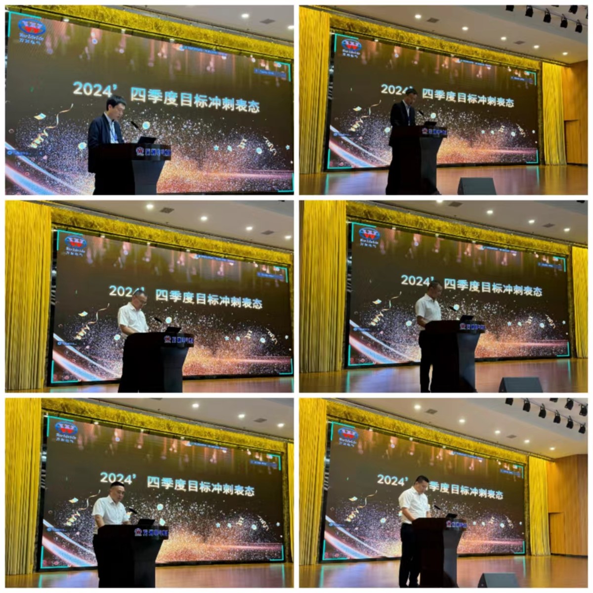承諾表決心,沖刺四季度。會上,市場營銷中心、產品制造中心、研發中心、綜合管理部門、銷售部門等領導依次上臺表態發言,明確第四季度工作規劃,并鄭重承諾將攜手并進、真抓實干,全力以赴沖刺年度目標。