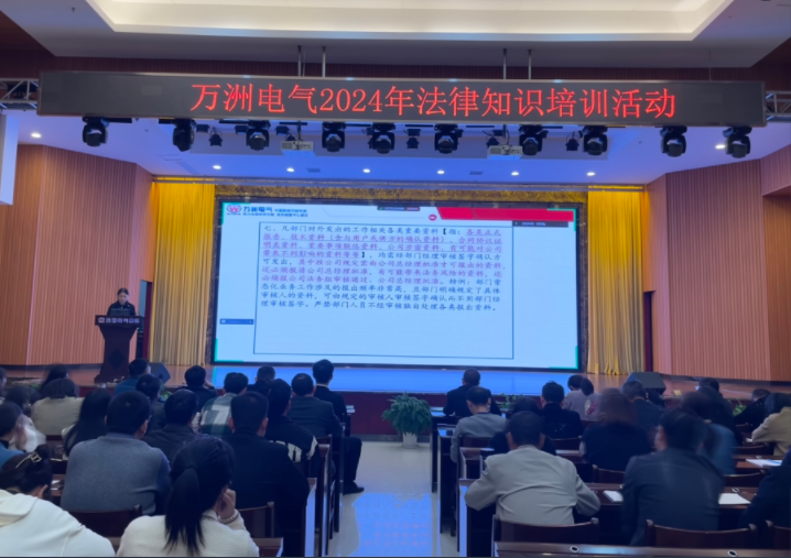 10月24日,萬洲電氣全體干部、市場大部、產(chǎn)品大部等相關(guān)部門人員70余人集聚一樓多功能廳參加2024年法律知識相關(guān)培訓(xùn)。