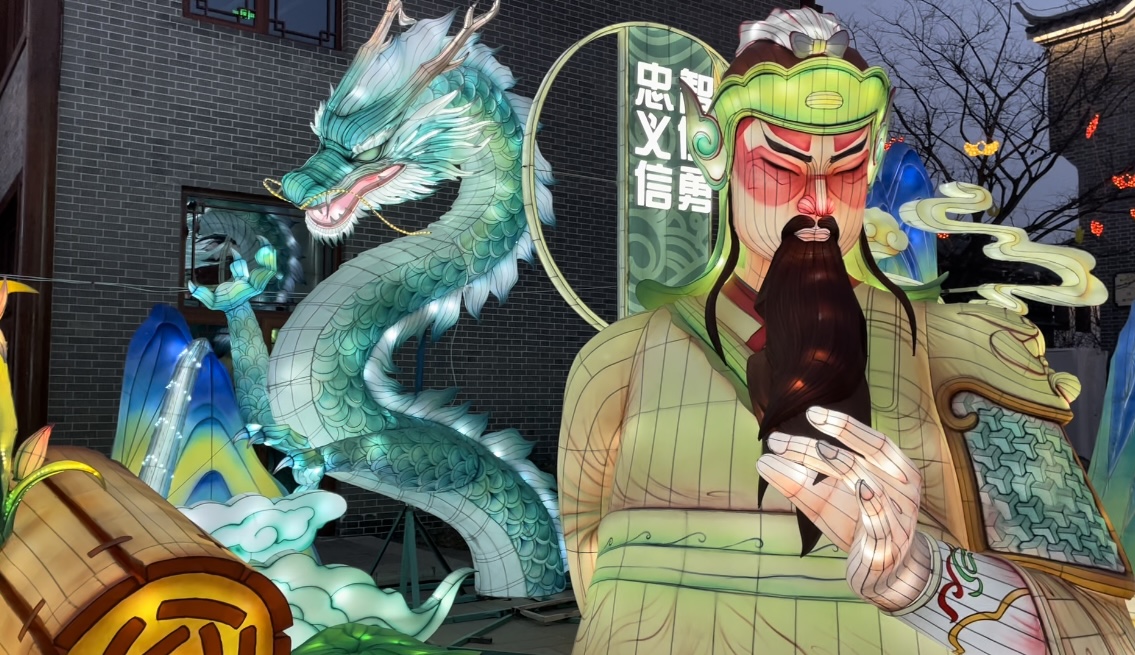 逛廟會、賞花燈。此次燈會是首屆襄陽關帝彩燈非遺藝術節,在樊城區工會的精心組織下,楊旭、陳磊跟隨勞模團一行觀看了精彩的三國文化節目表演,感受了關羽的忠義精神。此次燈會設置了“關圣貫古今”、“蛇年請好運”、“瑞獸迎豐年”、“我如此熱愛”四大主題觀賞區,栩栩如生的關公、活靈活現的金蛇……,精美絕倫的花燈與深厚的三國文化完美融合,勞模們漫步其中,品味經典。