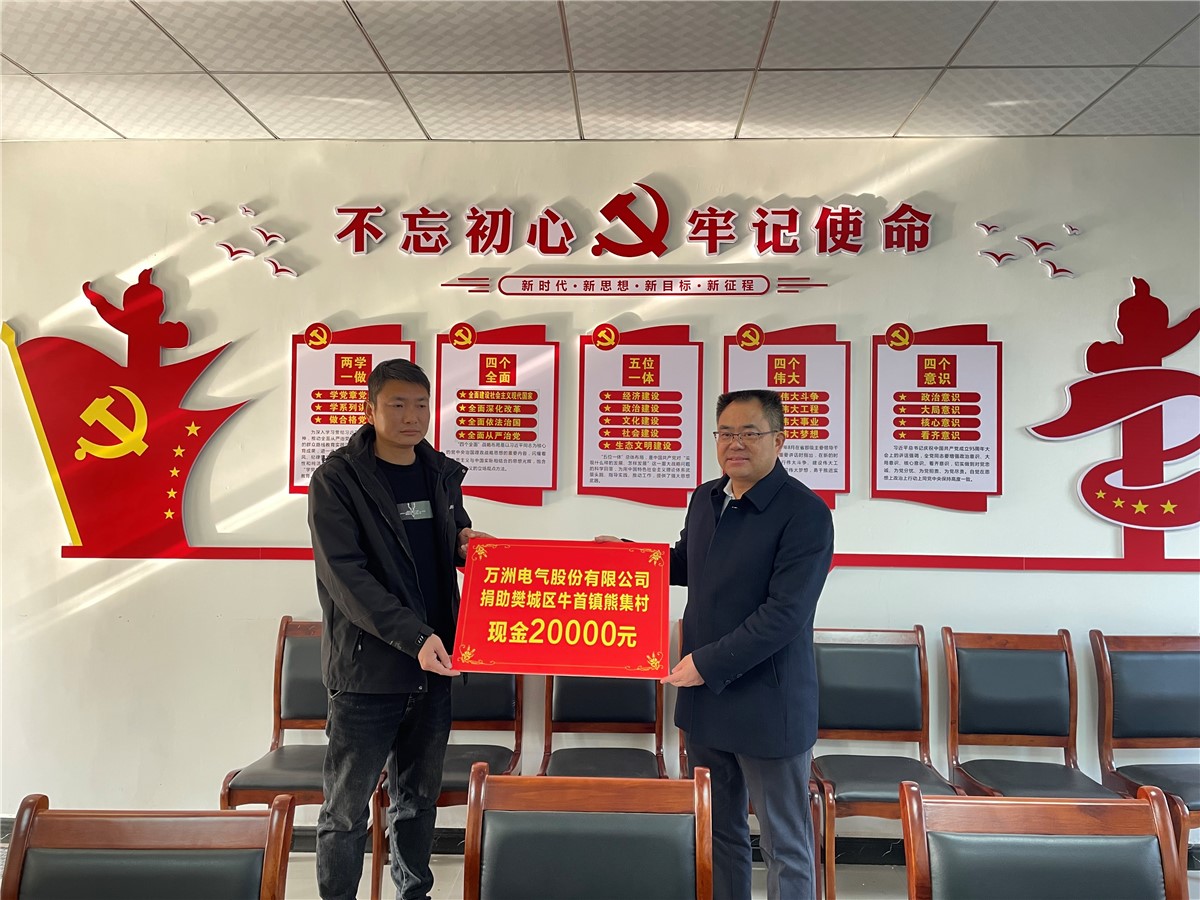 歲末春初,情暖鄉村。1月20日上午,萬洲電氣黨委書記、副總經理李明輝帶領萬洲黨委副書記萬善武、萬洲工會主席熊海娟等人來到樊城區牛首鎮熊集村開展幫扶活動。