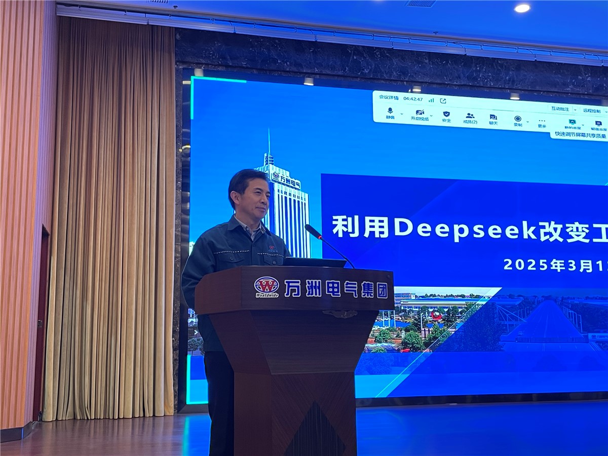 3月12日,萬洲電氣在一樓多功能廳召開deepseek利用成效匯報會,全體后方干部、各部門班組長、骨干及四大督辦部門相關人員共計百余人參加會議,萬洲電氣董事長、總經理趙世運、萬洲電氣副總經理、黨委書記李明輝、萬洲電氣副總經理包群英出席會議。