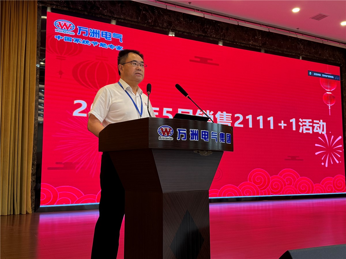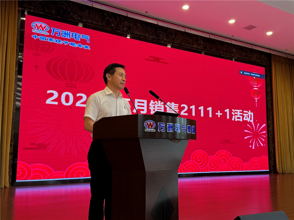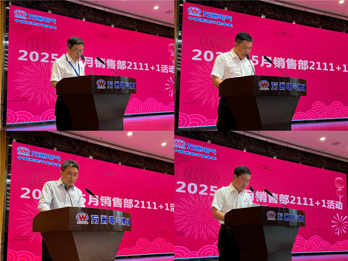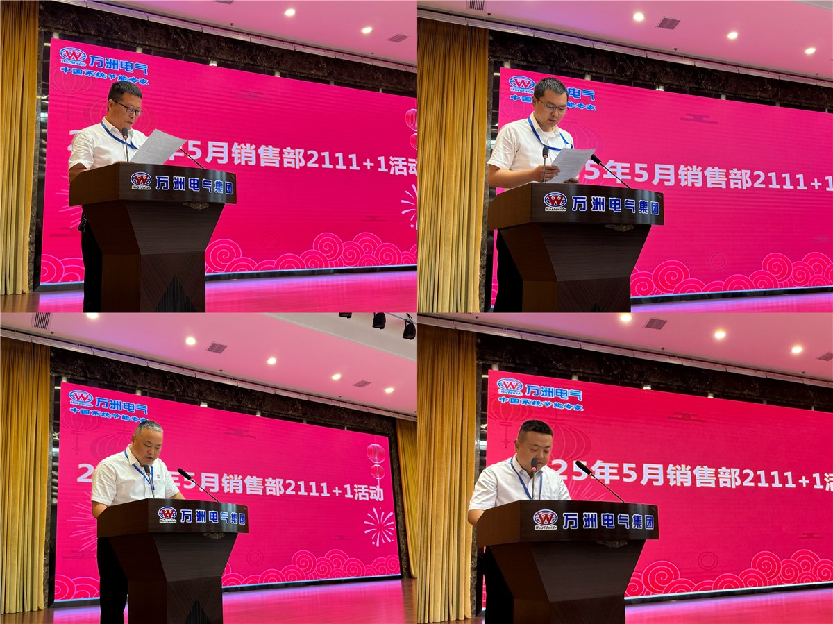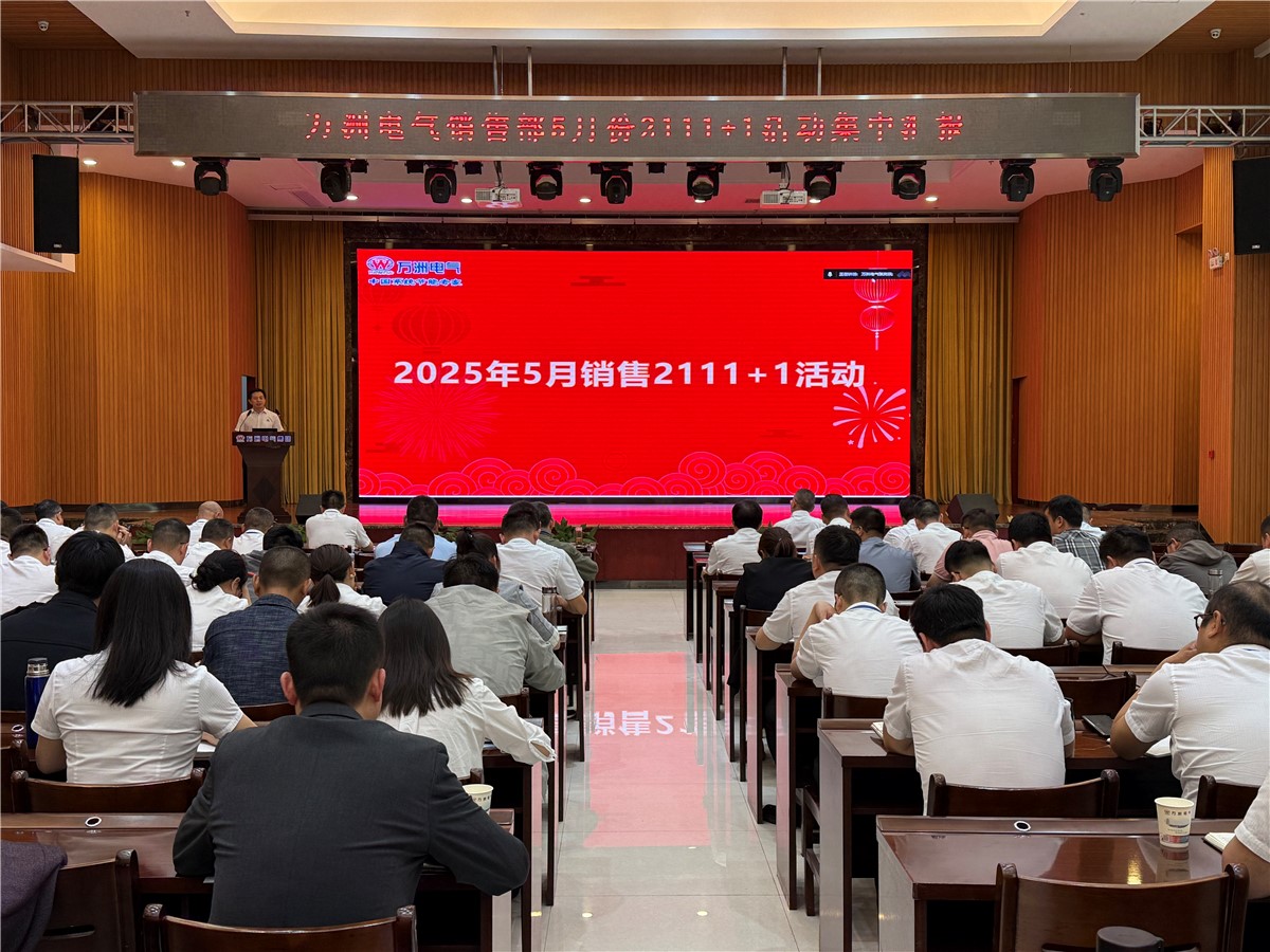 蟬鳴萬物秀、奮進正當時。58日,萬洲電氣在一樓多功能會議廳開展5月銷售2111+1專題匯報會,萬洲電氣董事長、總經理趙世運、萬洲電氣副總經理李明輝出席會議,全體銷售人員、各部門干部100人參加會議