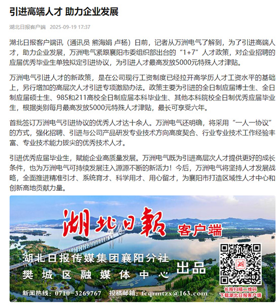 [湖北日報客戶端訊] 萬洲電氣:引進高端人才 助力企業(yè)發(fā)展