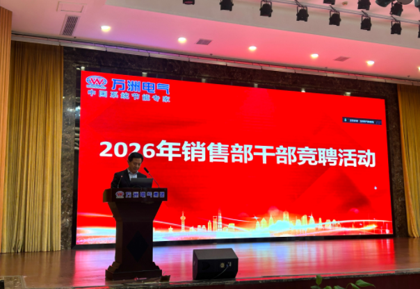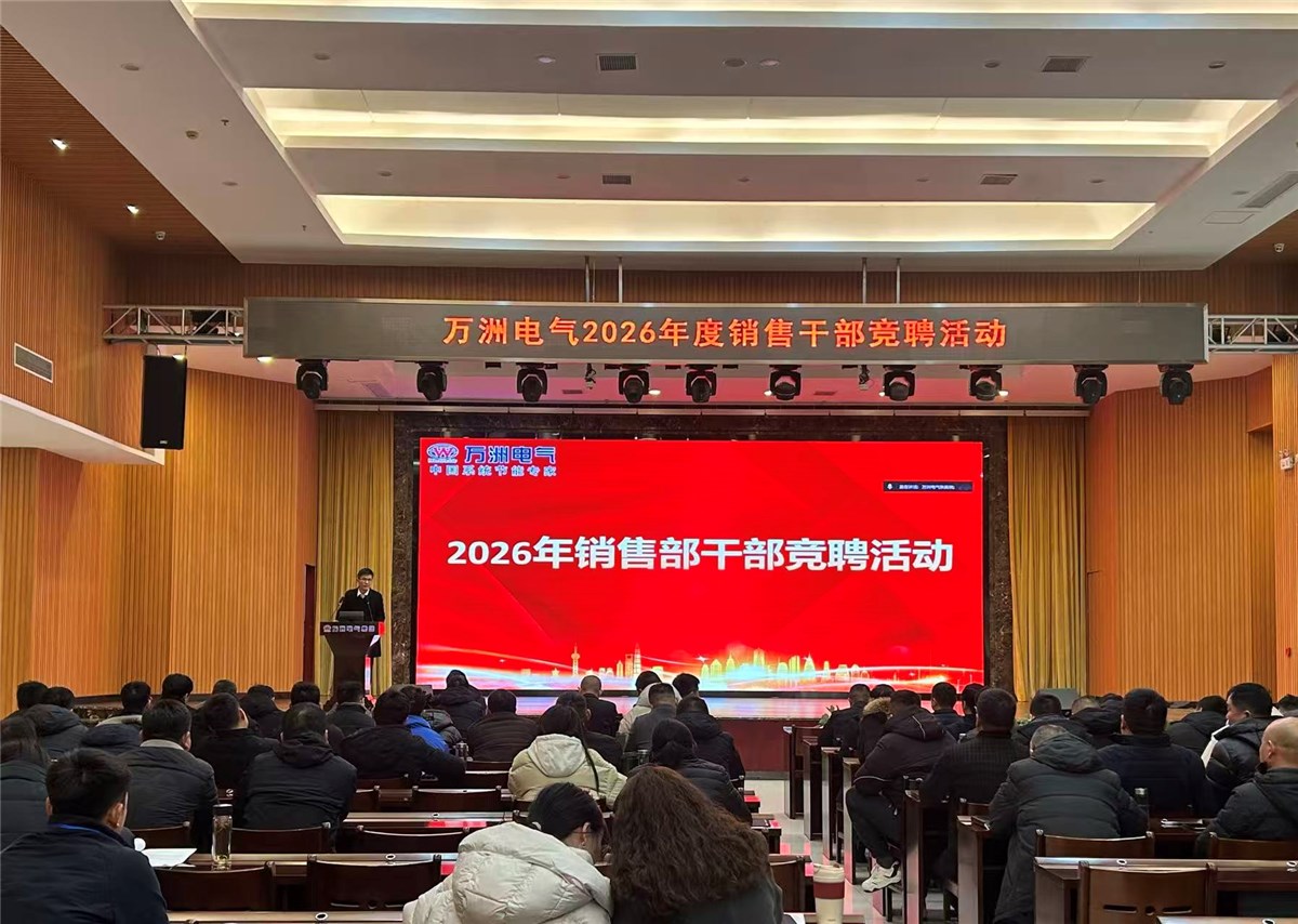優(yōu)化銷售管理團(tuán)隊,賦能市場開拓新程。1月4日上午,萬洲電氣在一樓多功能會議廳舉行2026年度銷售干部競聘活動。萬洲電氣董事長、總經(jīng)理趙世運、副總經(jīng)理李明輝、銷售部全體及市場策劃部等100余人齊聚現(xiàn)場,共同見證此次“競優(yōu)擇賢”的人才選拔會。