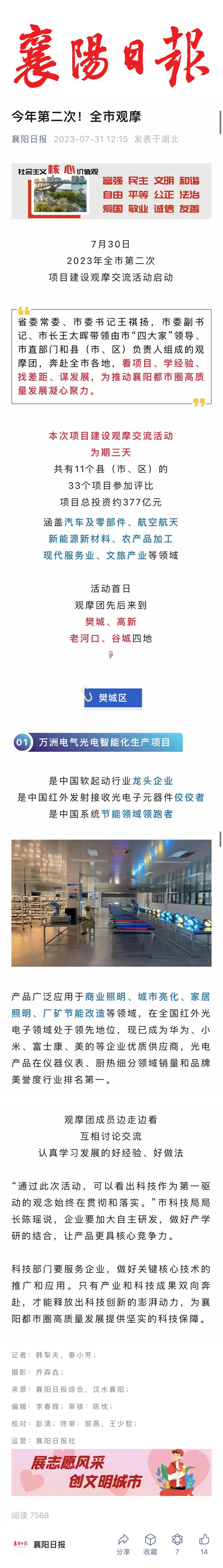 【襄陽日報】萬洲電氣:把“光明事業”做得更耀眼