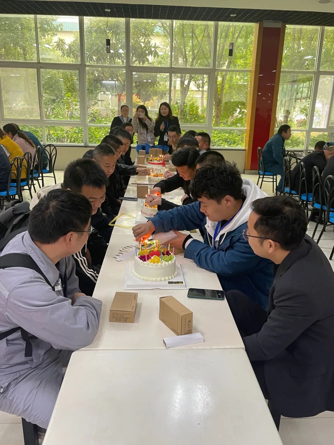 “這是我吃過最好吃的蛋糕!”10月8日中午,在萬洲電氣食堂一樓壽星們這樣說道。