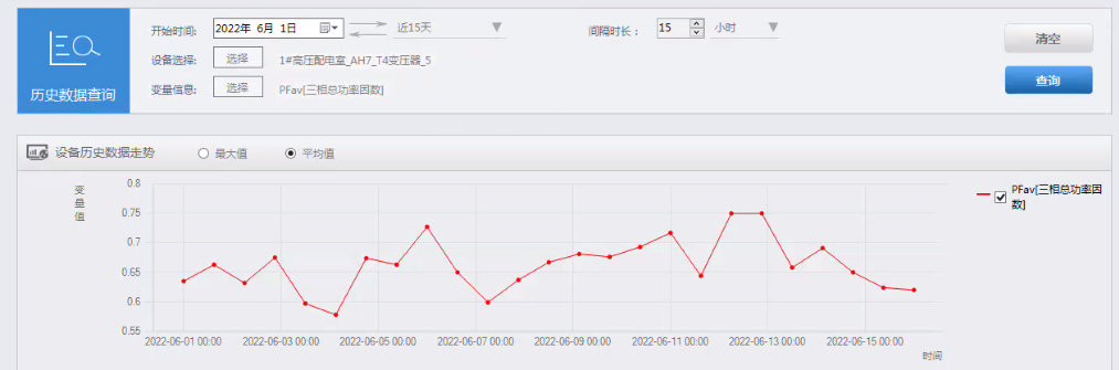 可以查詢設備如變壓器、空壓機的歷史運行數據,便于分析設備運行十分正常,以及了解設備的運行趨勢。