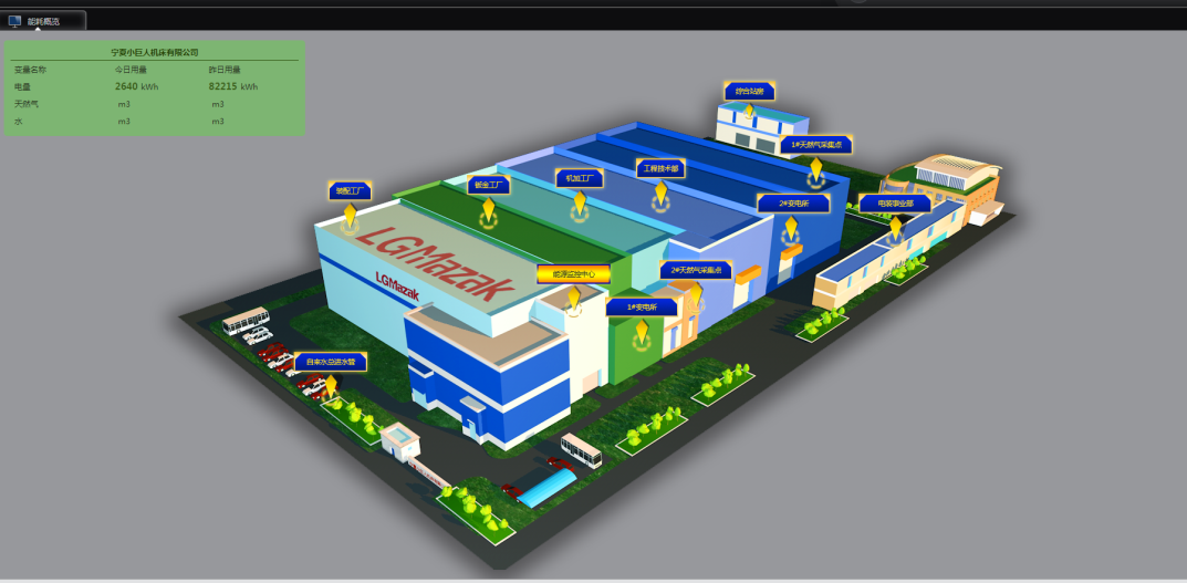 寧夏某機床有限公司年產立式加工中心和數控車床420臺,產值2.2億人民幣,人均勞動生產率達160萬人民幣,高效率的生產得益于公司全面引入了全新的機床制造概念,即加工過程高度柔性化、復合化、精益化,制造及管理過程的網絡化、信息化、智能化。 基于持續提升能源高效利用、經濟綠色發展的高追求目標,2020年該公司部署了一套WEMS能源管理中心系統。